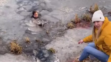 В России очевидцы сняли на видео, как женщина прыгнула в ледяной пруд, чтобы спасти собаку, сообщает Tengrinews.kz со ссылкой на "Москва 24".