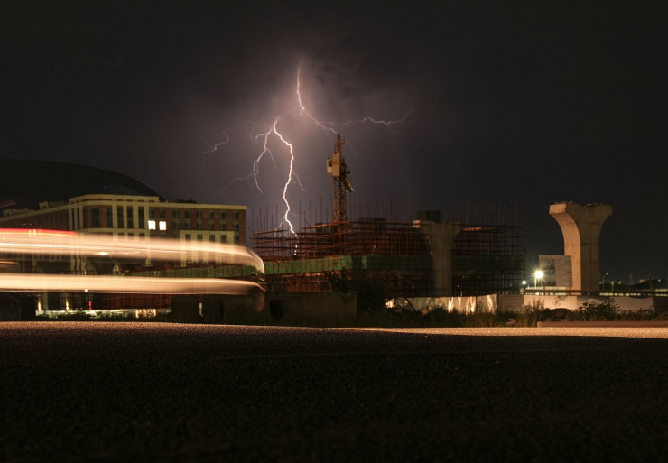Раскаты молнии в ночном небе Астаны запечатлел столичный фотограф. На одном из кадров кажется, что молния ударяет в одну из строящихся конструкций LRT, передает корреспондент Tengrinews.kz.