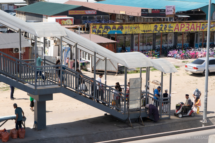 Мәселенің мән-жайына үңілу үшін қаладағы сауда орындарының бірінің маңындағы жер үсті көпірлеріне бардық. Байқауымызша жас та, жасымыс та көпірден қиындықпен өтеді.