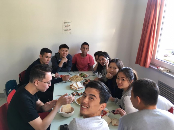 "Университет асханасында абыржып қалғаным бар еді. Түскі ас 3.3 еуро тұрады, ал ол 10 поинтқа бағаланады. Яғни осы 10 поинтқа тамақ аласың. Мысалы, ыстық тамақ 5 поинт, салат және десерт 2-3 поинт, бағасы, әрине, таңдауыңа байланысты. Бірде екі тамақ алып кассаға барғанмын, ондағы адамды түсінбей қиналып қалғанмын. Сөйтсем олай алуға болмайды екен, оны кейін французша білетін досым түсіндірді. Нәтижесінде бір тамағымды салат пен десертке ауыстырғаным есімде", - дейді ол.