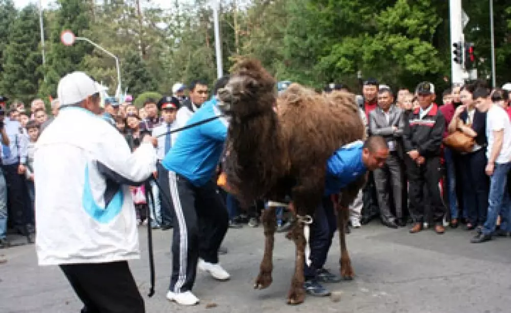 Житель Талдыкоргана Олжас Кайратулы победил в состязаниях под названием "туйе палуан", которые проводились в областном центре на Первомай, пишет газета "Экспресс К". Многократный чемпион республики по самбо сумел поднять и пронести верблюда на спине. Причем с тяжелой ношей, которая непрерывно брыкалась, вопила и норовила сбежать, борец прошагал без малого 15 метров. "Мне отец рассказывал, что в нашем роду были батыры, которые поднимали на себе и коня, и верблюда, - рассказывает Олжас Кайратулы. - Вот решил сам попробовать. Получилось!". Верблюд достался талдыкорганскому богатырю в качестве приза.