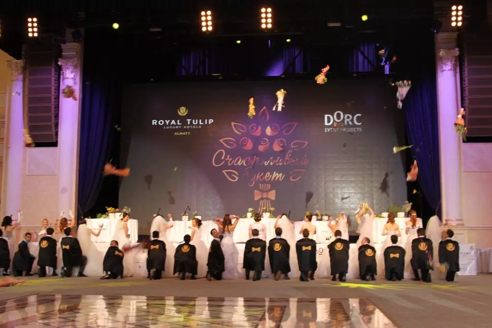 В соревновании участвовали 20 пар, которые уже поженились или собираются. Некоторые приезжали прямо после регистрации своих браков. Букеты для невест изготавливали сами женихи - им помогали флористы. Участникам предоставили для этого пятнадцать минут. Лучший букет на соревновании выбирало жюри, в составе которого была певица Толкын Забирова. "На самом деле чувствуется в каждом букете любовь, душа, отношение к своей второй половинке", - сказала певица.