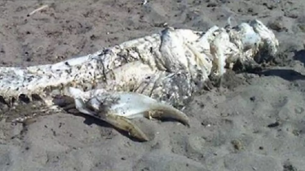 Морской монстр, как окрестили его журналисты, источал сильную вонь, имел рога и был похож на длинную белую змею. Находка поставила в тупик не только местных жителей, но и ученых.