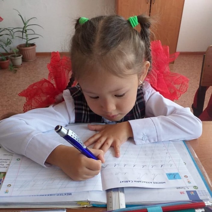 "Тақпақты тез жаттайды және кейін ұмытып қалмайды. Математикаға қызығады. Өскенде басшы боламын дейді. Үйде сурет салып, жазу жазумен айналысады. Балаларды оқуға баулып, білімін беріп жатқан ұстазы Гүлмира Қуатқызына көп рақмет", - дейді анасы.