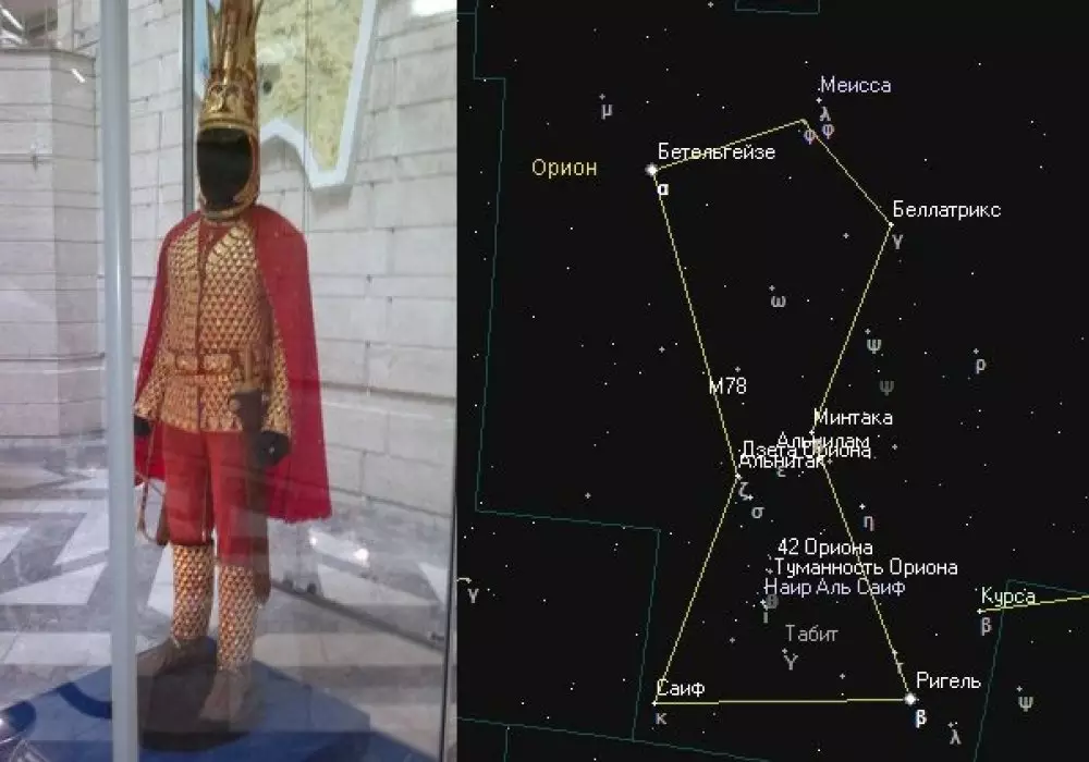 Пользователь laplanddream, по его словам, обнаружил "интересное совпадение", связанное с созвездием Ориона и расположением курганов, где был найден иссыкский "Золотой человек".