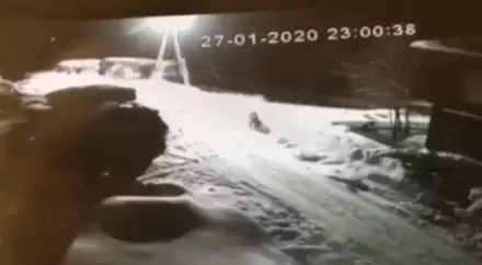 На кадрах видно, как хищник тащит собаку. Автор видео говорит, что все происходит около 23.00 часов. "Видео снято видеокамерой с дома племянника, до леса метров 300", - пояснил мужчина.