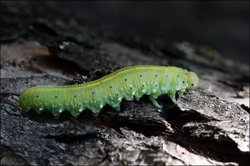 Гусеницы угрозы для жителей не представляют, они истребляют в основном растительность на огородах жителей. Специалисты относят вредителей к особому виду ильмового листоеда. Однако по внешнему виду они больше напоминают пядениц. Гусеницы ползают весьма своеобразно: укрепившись грудными ногами, петлей изгибают среднюю часть тела вверх и придвигает брюшные ноги к грудным. Благодаря сильно развитой мускулатуре, они могут, укрепившись задними ногами на ветке, приподняв и вытянув тело, оставаться неподвижными долгое время.