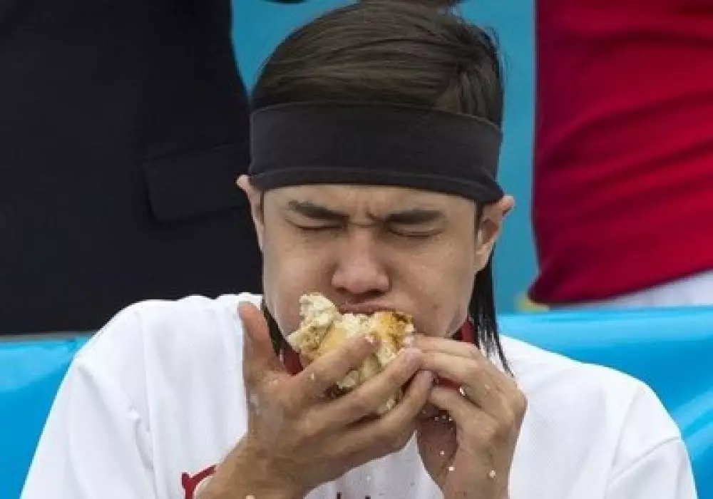 На ежегодном чемпионате по скорости поедания хот-догов, прошедшем в Нью-Йорке 4 июля, определился новый победитель. Им стал 23-летний Мэттью Стоуни (Matthew Stonie), который за зачетные 10 минут проглотил 62 булочки с сосиской, передает CNN.