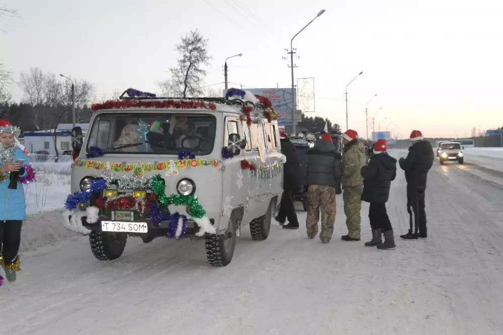 Украшенные автомобили, Снегурочки и Деды Морозы за рулем, множество подарков - все это водители сделали специально для жителей города. В пробеге участвовали автомобили самых разных марок. Организатором автопробега стал петропавловский автоклуб 4x4 "Внедорожник".