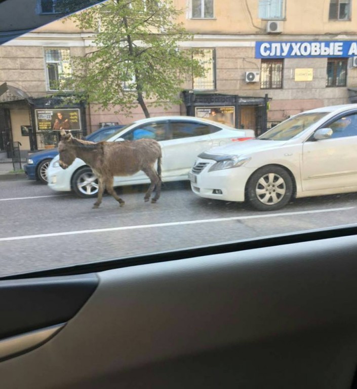 Одиноко бродившего ослика жители Алматы наблюдали утром 11 апреля в разных частях города. Так, пользователь Facebook Кайрат Кудайберген у себя на странице написал следующее: "8.30 утра, Желтоксан - Богенбай батыра. Одинокий ослик шел по своим делам, пытаясь раствориться в потоке алматинских пробок. "А че, понедельник же!" - подумал я. Всем позитивного утра и доброго понедельника, друзья! P.S. Это Алматы, детка".