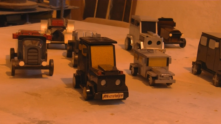 В другой колонии - средней безопасности - АК-159/18 36-летний осужденный Сергей Альшимбаев уже 9 месяцев выпиливает модели ретромашин. Говорит, на свободе такие машинки любит его 4-летний сынишка. Мужчина решил сделать такие же для детдомовских ребятишек. До колонии Сергей 18 лет работал автомаляром.