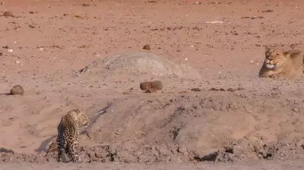 Охоту львицы на леопарда сняли на видео