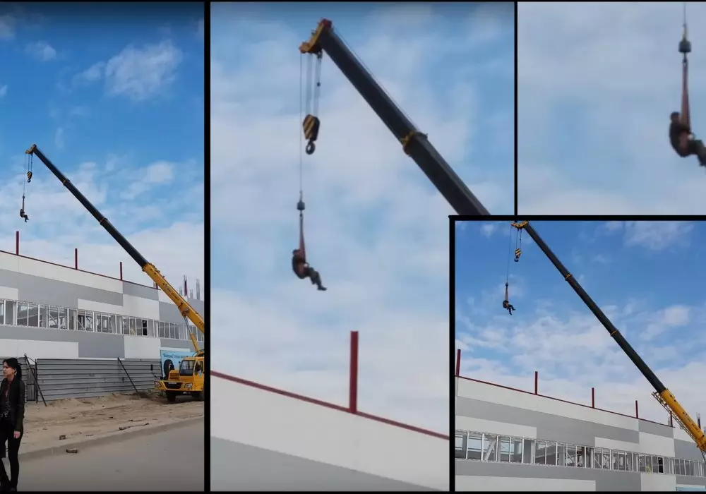В Интернете появилось видео случайного очевидца под названием "Самые опасные карусели Алматы''. На кадрах видно, как на высоте пятиэтажного дома на крюке строительного крана сидит мужчина. Причем он без какой-либо паники раскачивается и смотрит по сторонам.
