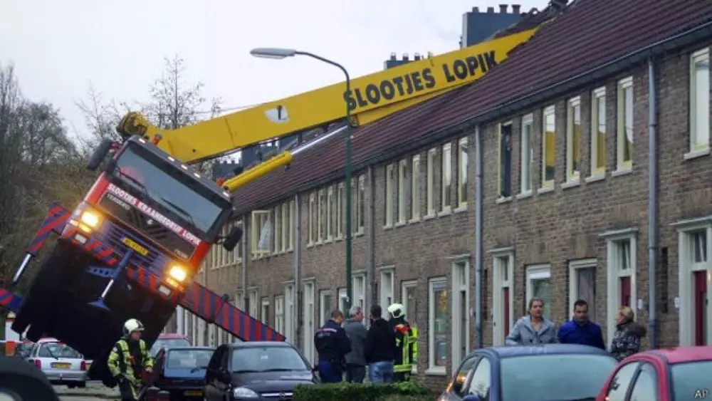 Попытка голландца спуститься на подъемном кране к окну его любимой женщины и предложить ей выйти замуж закончилась тем, что кран упал и повредил несколько домов, сообщает ВВС.