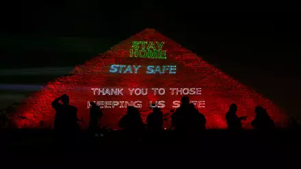 Сообщается, что власти страны также выразили благодарность медикам, которые сражаются с опасной болезнью. На пирамиде высветилась надпись "Спасибо тем, кто защищает нас".