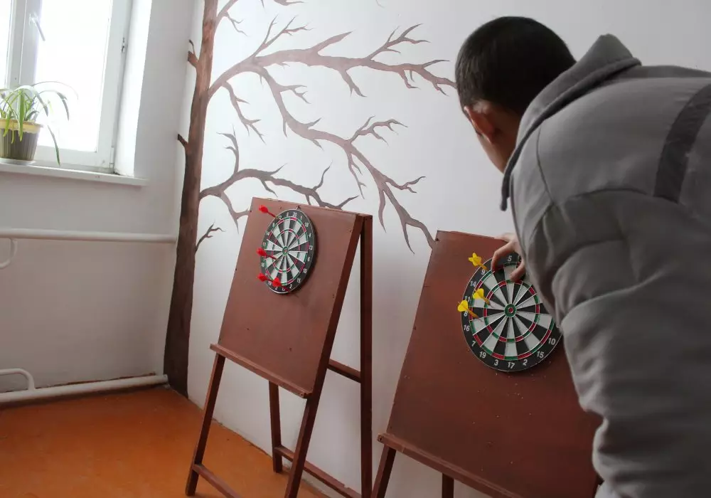 В Павлодарской колонии АП-162/2 прошел турнир по игре в дартс. Необычные соревнования предложили провести сами осужденные, и администрация учреждения пошла навстречу. Участников игры собрали в кабинете психолога, поделили на команды, раздали больше десятка дротиков и дали пристреляться. Попасть в мишени оказалось непросто. Для сложности на них установили металлические ограничители. Сталкиваясь с таким препятствием, дротики падали на пол. Но участники с азартом и упорством продолжали прицеливаться, стремясь выбить как можно больше очков.