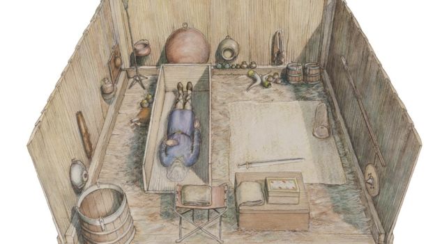 К исследованию гробницы подключились археологи из Лондонского музея археологии (Mola). Они обнаружили отлично сохранившуюся погребальную камеру размером 4 квадратных метра с 40 редчайшими артефактами VI века. По словам ученых, это самое древнее христианское захоронение англосаксонской королевской особы. Среди редких артефактов - эмаль зубов, древний музыкальный инструмент лира и деревянная шкатулка, золотые монеты, позолоченное горлышко деревянного сосуда для питья, декоративные стеклянные стаканы и кувшин. Многие предметы привезены из разных стран.