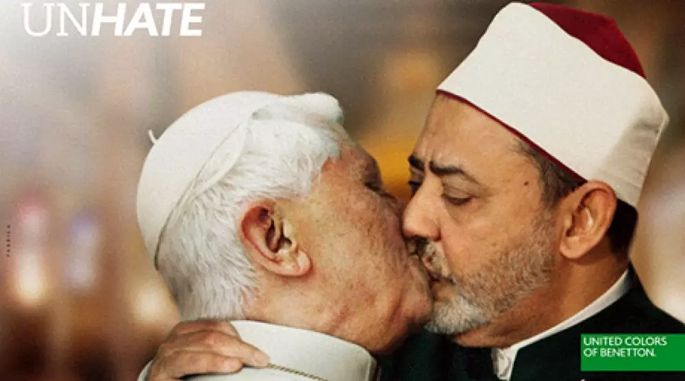 Итальянская компания Benetton отозвала рекламу с изображением целующихся Папы Римского и имама после протестов со стороны Ватикана, сообщается на сайте BBC Russian. Сообщается, что компании пригрозили судебным разбирательством в случае, если она выпустит этот плакат. Поясняется, что представитель Ватикана назвал рекламу недопустимой. Между тем в Benetton рассказали, что плакат был посвящен борьбе с ненавистью во всех ее формах. Уточняется, что в рамках рекламной кампании были созданы и другие фотомонтажи. Так, на рекламных плакатах кроме Папы Римского изображены целующиеся президент Франции Николя Саркози и канцлер Германии Ангела Меркель, израильский премьер Биньямин Нетаньяху и палестинский лидер Махмуд Аббас, а президент США Барак Обама - вместе с венесуэльским лидером Уго Чавесом. Добавим, что фотограф Оливьеро Тоскани для рекламы Benetton в 2010 году снимал заключенных, приговоренных к смертной казни, а также умирающих от СПИДа пациентов.
