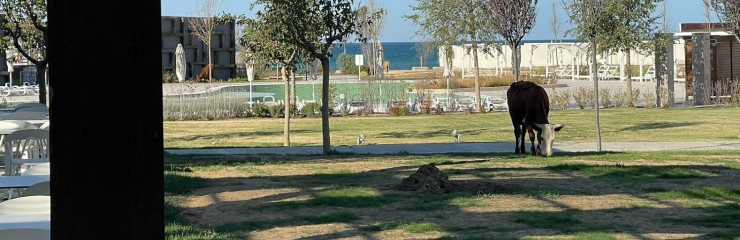 Коровы поедали траву на газоне отеля Rixos Water World Aktau, передает Tengrinews.kz со ссылкой на inAktau.kz.