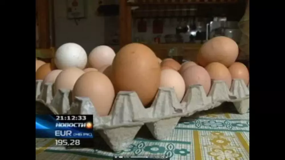 В пригороде Уральска в поселке Трекино курица снесла гигантское яйцо, сообщает телеканал КТК. Яйцо-рекордсмен весит в три раза больше обычного - 123 грамма. По мнению хозяина, секрет кроется в птичьем корме - несушки едят только проросшее зерно. Кроме того, в курятнике постоянно звучит музыка, что повышает аппетит. Пенсионер не собирается фиксировать рекорд, и когда интерес к огромному яйцу ослабнет, он его просто съест. "Собираю яйца, смотрю, невероятно большое. Мне стало интересно, думаю, дай замеряю. Замерил габариты - кошмар", - делится впечатлениями хозяин несушки Владимир Васьков.