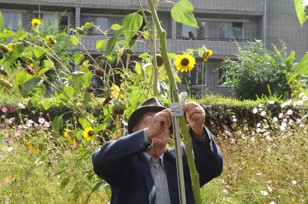 В учреждении рассказали, что пенсионеры уже много лет занимаются выращиванием цветов различных сортов. В этом году 82-летний Василий Алеев решил посадить декоративные подсолнухи. Однако дедушка не ожидал, что их высота достигнет рекордных четырех метров. "Я измерил один из подсолнухов, в высоту он достигает четырех метров", - уточнил Василий Григорьевич.