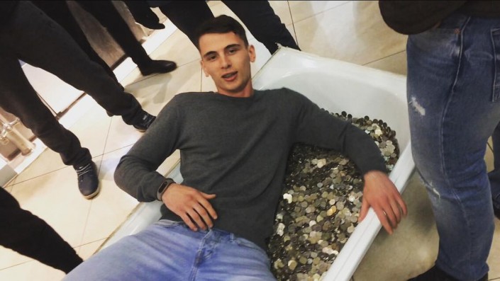 Как оказалось, инициатором шуточной акции стал известный московский блогер Святослав Коваленко. В своем Instagram молодой человек рассказал, что ванна с мелочью весила около 350 килограммов.