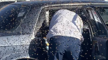 Дежурный пожарный Джесси Джонсон, который подрабатывает пчеловодом, использовал улей и масло лемонграсса, чтобы выманить из машины около 15 тысяч пчел. Их перевезли в его собственность, которая находится за пределами Лас-Крусеса.