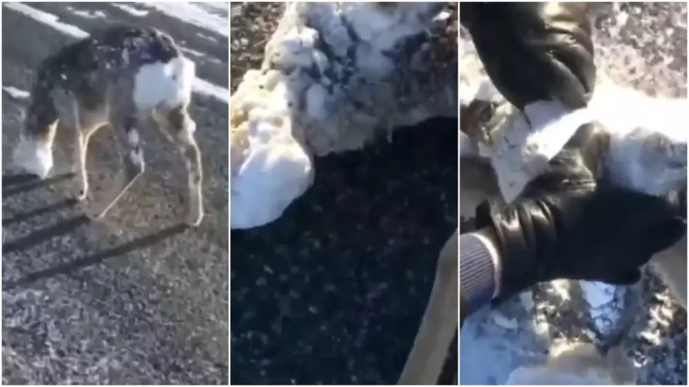 На кадрах видно, что животное покрылось коркой ледяного снега и не могло поднять морду, потому что ее тянул вниз налипший снежный ком. Глаз косули тоже было не видно из-за намерзшего снега. Убегать от спасателей животное не торопилось.