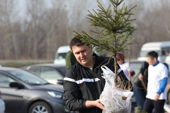 Оставшуюся часть высадят в ближайшие дни. В составе пятисот деревьев, которые были сегодня частично высажены, 260 сосен и еще по 60 голубых елей, тополей, берез и ясеней. Одновременно с посадкой новых деревьев сотрудники ForteBank пересадили часть деревьев с места строительства здания филиала, на территории которого под снос и пересадку попало 51 дерево.
