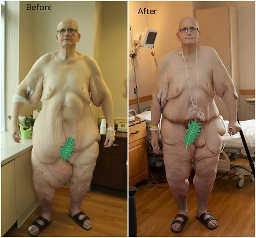 Фото Пола Мейсона до и после операции по удалению кожи