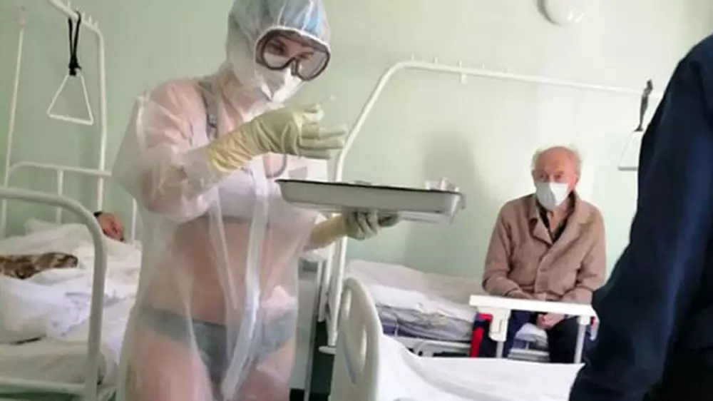 В Сети появился новый снимок медика из Тульской области, которая работала в прозрачном защитном костюме и купальнике. Популярность девушки не утихает - российский производитель нижнего белья даже намерен предложить ей работу модели, передает Tengrinews.kz со ссылкой на Тульские Новости.