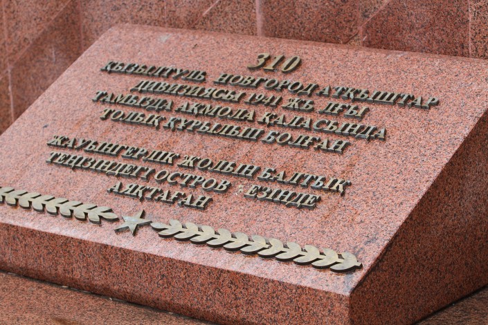 В редакцию Tengrinews.kz обратился читатель, который обратил внимание на памятник двум солдатам, стоящий по проспекту Победы. Как выяснилось, на табличках, которые являются частью монумента, не хватает некоторых букв и цифр, в том числе не читаются даты 1941-1945.