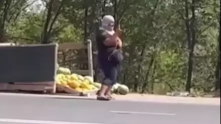 Танцующего продавца арбузов, привлекающего таким образом внимание к своему товару, можно увидеть на выезде из Уральска, передает корреспондент Tengrinews.kz.