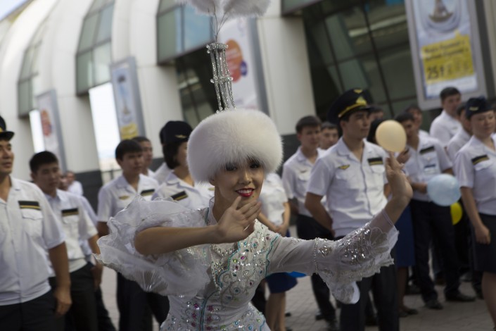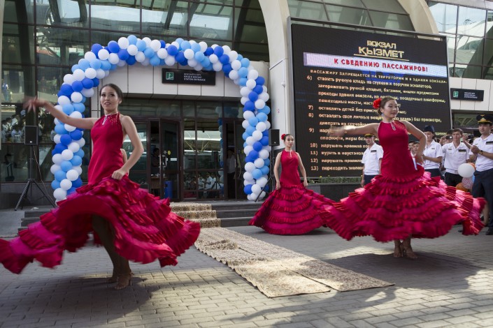 Проводники устроили флешмоб на вокзале Астаны Фото пресс-службы КТЖ