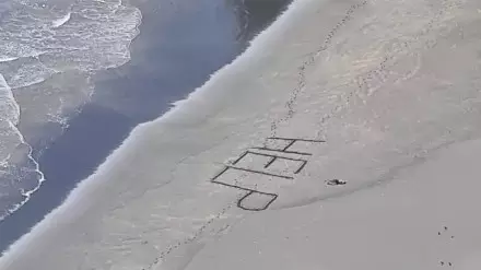 "Надпись на песке не видно с пешеходных дорожек в северной части залива Мерсер-бэй, поэтому ему очень повезло, что кто-то проходил мимо и смог его увидеть", - сказал Свонникс.