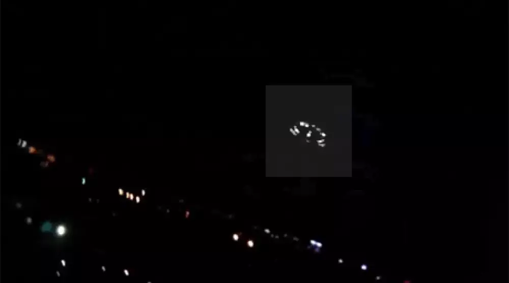 На видео попавший в кадр НЛО по форме похож на диск, который светится огнями. Летающая тарелка зависает недалеко от здания, а когда очевидец начинает снимать, улетает.