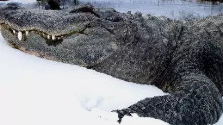 Такое природное явление удивило питомцев фермы. Реакцию аллигатора на снег заснял владелец хозяйства и выложил в Сеть.