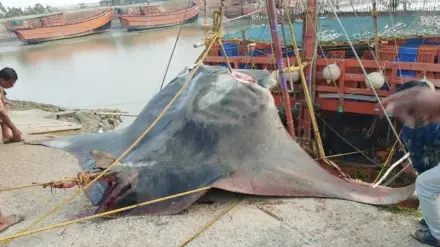 В Индии у побережья штата Западная Бенгалия рыбаки поймали редкую для этих мест рыбу - гигантского ската весом около 900 килограммов. Об этом сообщает издание Orissa Post.