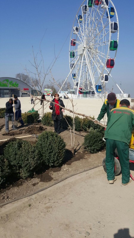 "У нас проект благоустройства еще не закончен. Мы же открылись в начале марта, хотели жителям города на 8 Марта сделать праздник, сейчас проект благоустройства и озеленения дальше продолжается. Так что все еще впереди. Мы сейчас плитку только успели выложить и открыться. А сейчас посадки делаем. Буквально сейчас везут колонновидные туи. Мы их посадим в декоративные кадки и расставим по периметру площади. Мы убрали около 10 елей, а высадим штук 90. Еще посадим взрослые лиственные деревья - штук 60. К концу марта мы планируем высадить около 150 деревьев",  - рассказал директор парка Коктобе Нурлан Казиев.