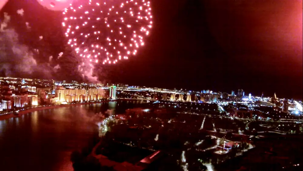 Салют в Астане сняли с высоты птичьего полета, сообщает Tengrinews.kz.