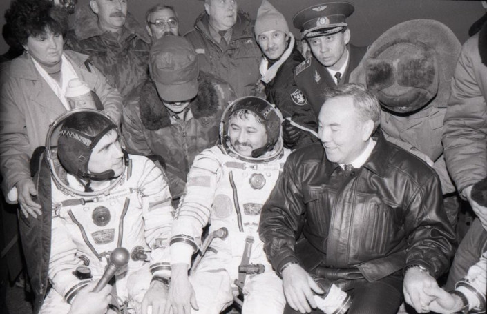 Поводы для встреч с представителями разных профессий у Первого Президента были разные. 4 ноября 1994 года, к примеру, он встретился с космонавтами Талгатом Мусабаевым, Юрием Маленченко и Ульфой Мербольдом. В тот день экипаж закончил космическую вахту на орбитальной станции "Мир", пребывание в космосе длилось больше четырех месяцев.