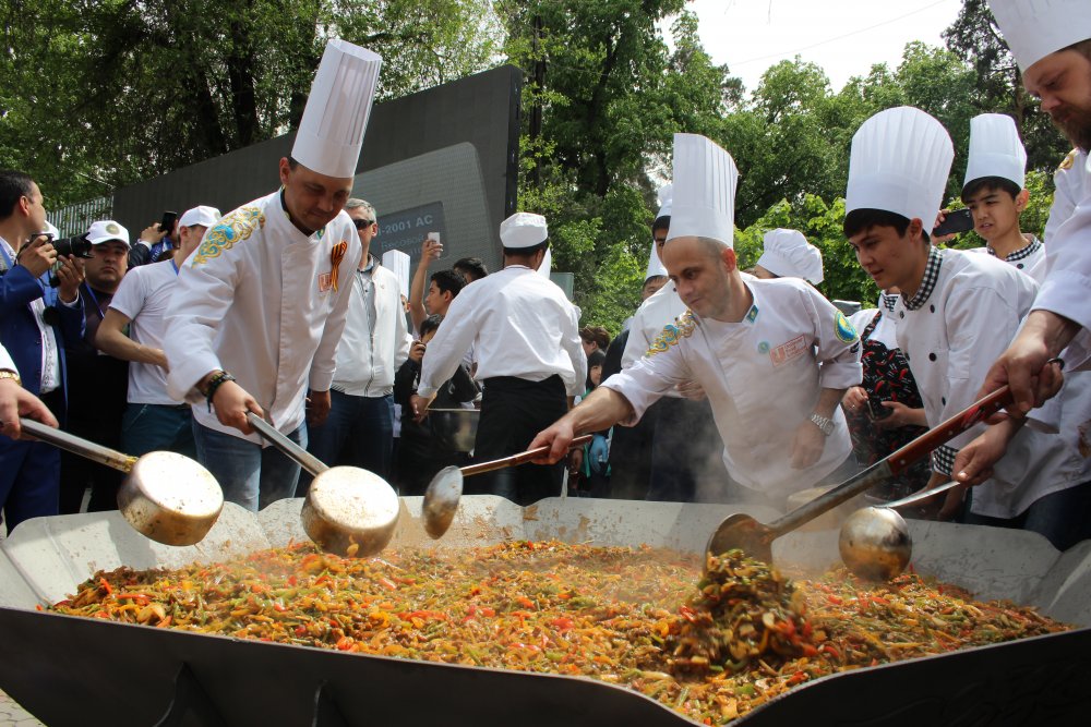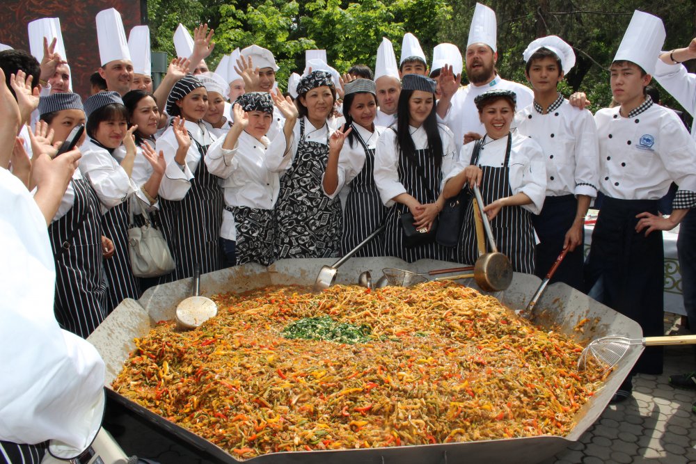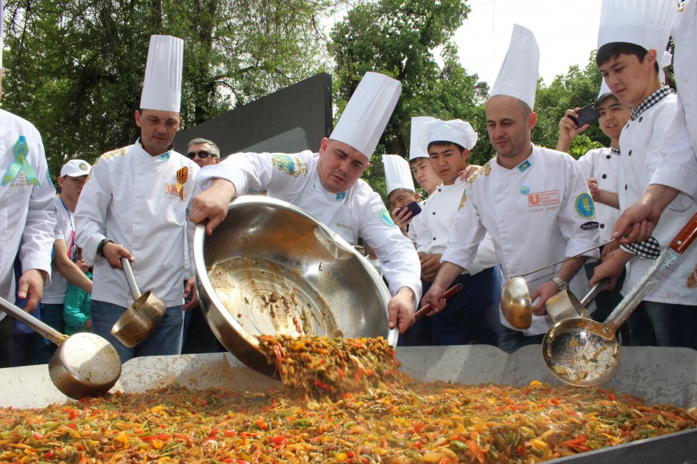 Огромное блюдо готовили на площади перед Уйгурским театром в Алматы. "Мировой рекорд сейчас составляет 687 килограммов. До этого мирового рекорда на самый большой в мире лагман не было, потому что у нас есть минимальное требование по весу в 500 килограммов. Главные критерии - лагман должен быть приготовлен по традиционному рецепту и раздаваться в одном блюде", - сказал представитель Книги рекордов Гиннесса Бенжамин Бекхаус. Он сообщил, что мировой рекорд о самом большом лагмане в мире зафиксируют на веб-сайте организации ближе к 5 мая. В книгу он может попасть в 2016 году.