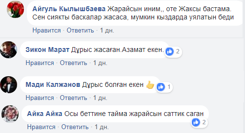 "Бұрын батырларымыз жерді жаудан қорғаған! Бүгінгілер камшымен жезөкшені қуалап жүр, осы "батырлығын" рахаттана камераға түсіреді, қорқыныштысы - оның ісіне қолдау білдіріп, қошемет көрсеткен жұрт. Қоғамның кері кеткенінің айқын мысалы! Құқық қорғау органдары бұған бағасын беріп, қоғамдық шектен шыққан жағдайға қатысты пікір білдіреді деп үміттенемін", - дейді Алагөзова.