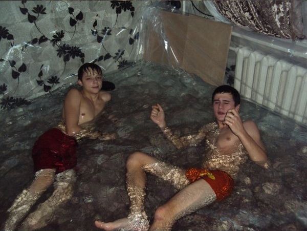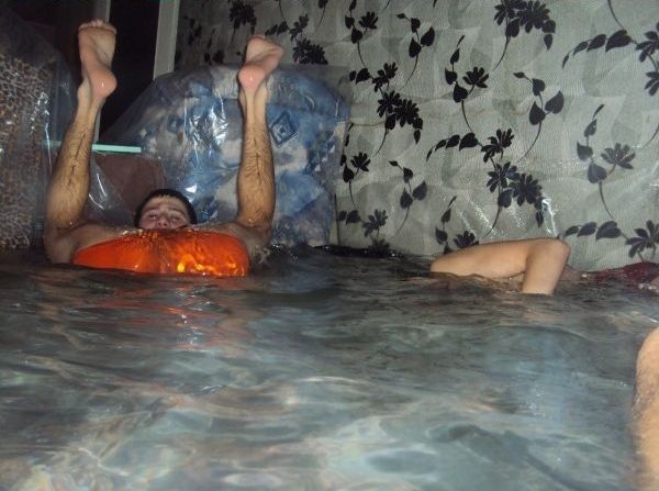 Настоящими героями Рунета стали школьники из Орловской области России. Находчивые парни, имена которых неизвестны, решили спасаться от жары необычным способом: они устроили бассейн прямо в одной из комнат квартиры.