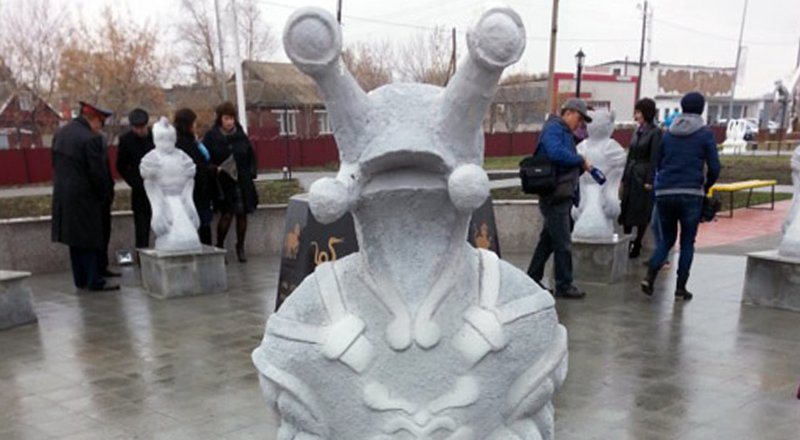 Необычная каменная фигура установлена на аллее молодоженов. Она является частью единого ансамбля, изображающего 12 знаков восточного гороскопа. Скульптура посвященная году Дракона. Однако, по мнению пользователей Казнета, выглядит она довольно необычно - больше похожа на персонажа из фильма "Звездные войны" Джа-Джу Бинкса. Более того, под изваянием имеется табличка, на которой написано на русском языке "Дракон", а на казахском - Ұлу (Улитка).