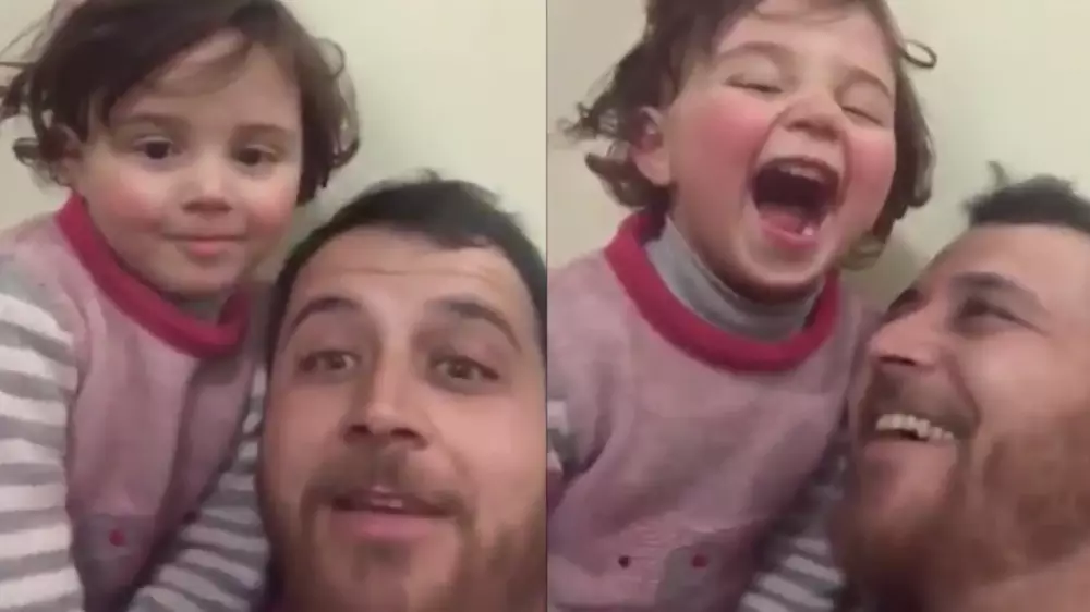 Through a relentless bombing campaign on Idlib this Syrian father has been teaching his daughter to laugh when she hears explosions. pic.twitter.com/wRojclnuKO