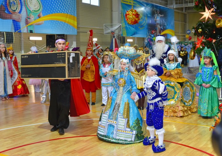 А на президентской елке в Акмолинской области был замечен костюм инопланетянина.