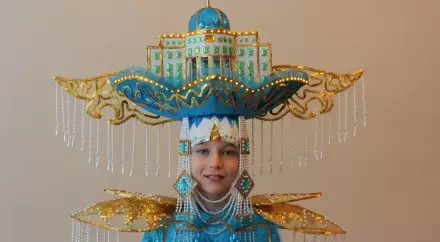 "На задней части костюма расположены здания Министерства по инвестициям и развитию, Хан-Шатыр и Дворец мира и согласия. Головной убор выполнен в форме лодки, на которой возвышается здание резиденции Президента РК Акорды, за ним располагаются золотые крылья-паруса, задающие правильный политический курс развития страны. Цифра 25 на золотистом шаре Байтерека знаменует 25-летие Независимости РК", - добавила завуч интерната Валентина Найманбаева.