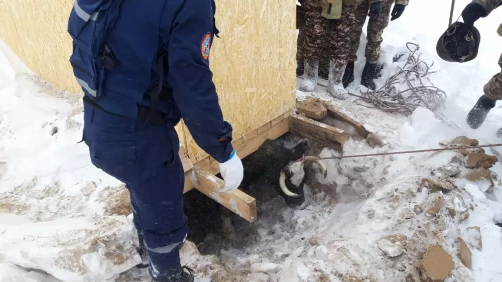 "Примерно сутки корова провела в этой яме, пока ее не заметили военные. Они-то и вызвали спасателей", - рассказали в пресс-службе Департамента по чрезвычайным ситуациям Восточно-Казахстанской области.