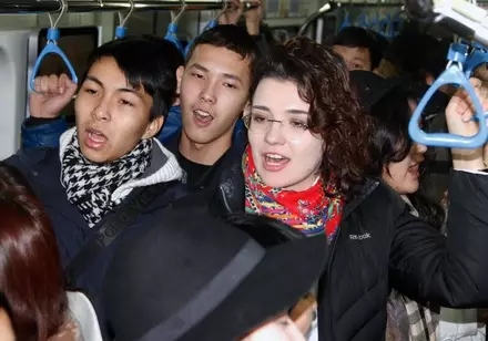 Студенты спели "Көзімнің қарасы" в метро Алматы в честь закона о молодежной политике Фото ©Tengrinews.kz